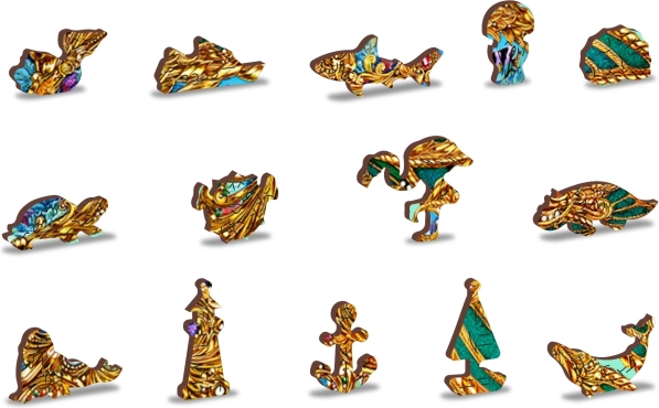 Barvit podmorski dizajn s posebnimi koščki v oblikah morskih živali in rastlin doda sestavljanju izvirnost in veselje do odkrivanja.