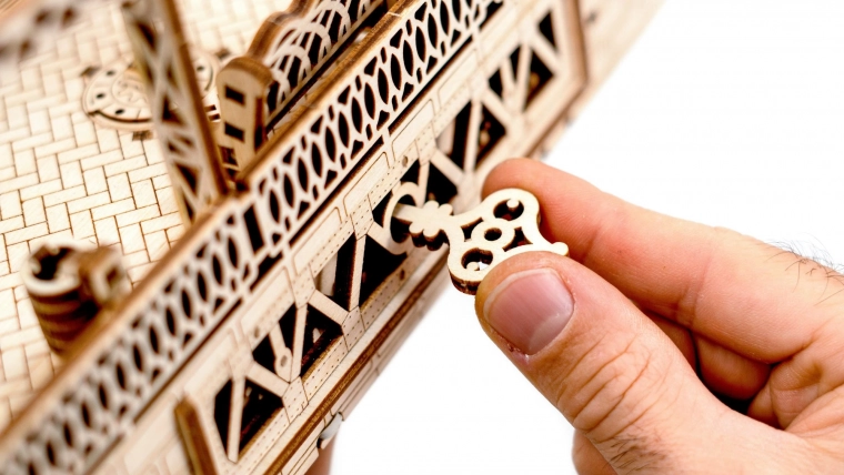 Natančni izrezi, zobniki in gladko delovanje po voskanju. Sestavljanje poteka čisto – deli natančno sodijo skupaj brez potrebe po lepilu.
