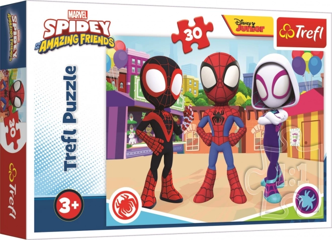 Razveselite male navdušence nad superjunaki s sestavljanko z motivom SPIDEYA in njegovih prijateljev. Komplet s 30 kosi je odličen za prve izzive sestavljanja – razvija potrpežljivost, logično razmišljanje in fino motoriko. Kakovosten tisk in natančni izseki zagotavljajo udobno sestavljanje in čudovito končno sliko 20 × 27 cm.