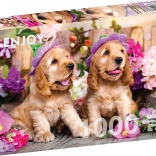 Uživajte v sprostitvi z ljubkimi motivi – ta kakovostna sestavljanka z motivom kužkov kokeršpanjela in cvetličnimi klobučki ponuja 1000 kosov in končne mere 68 × 48 cm. Idealna za ljubitelje psov in strastne sestavljavce, ki iščejo zabavo, potrpežljivost in počitek v enem.