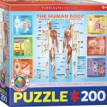 Ta kakovostna izobraževalna sestavljanka otrokom na razumljiv način približa anatomijo človeka. Posamezni deli telesa so poimenovani (v angleščini), kar pomaga pri razvoju besednega zaklada in splošnega znanja. Zaradi 200 kosov je sestavljanka idealna za šolarje, ki želijo trenirati opazovanje in logično razmišljanje.