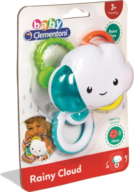 Odkrijte senzorično igračo, ki otroke pritegne na prvi dotik. Deževni oblaček ob vrtenju nežno šumi zaradi kroglic v notranjosti, s čimer ustvarja prijeten in pomirjujoč učinek. Različno veliki in teksturirani loki služijo kot varno grizalo ter lahki oprijemi za majhne ročice.