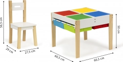 Ustvarite otrokom lasten kreativni kotiček s kompletom ECOTOYS, ki združuje igralno mizo in shranjevalni prostor v enem. Robustne noge iz borovega lesa in trpežna MDF plošča zagotavljajo stabilnost in dolgo življenjsko dobo. Zaradi čistega skandinavskega dizajna se komplet odlično poda v otroško sobo, igralnico ali čakalnico.