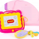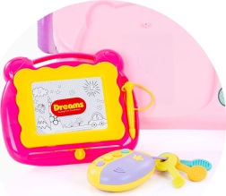 Risalna tablica s pisalom, zobniki, gumbi, ogledalce in ključi z upravljalnikom razvijajo fino motoriko, vid in sluh.