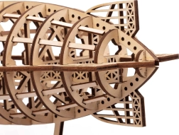Natanko izrezani deli, ki po sestavi tvorijo realističen model zračne ladje.
