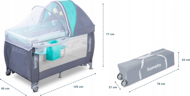 Potovalna posteljica LIONELO Sven Plus je idealna izbira za počitnice in obiske pri družini. Zahvaljujoč stabilnim nogam in kolesom z zavoro jo zlahka premikate in zagotovite stabilnost. Dva višinska položaja vzmetnice omogočata udobno namestitev tako dojenčka kot večjega otroka, stranski vhod na zadrgo pa zagotavlja enostaven dostop in zabavo.