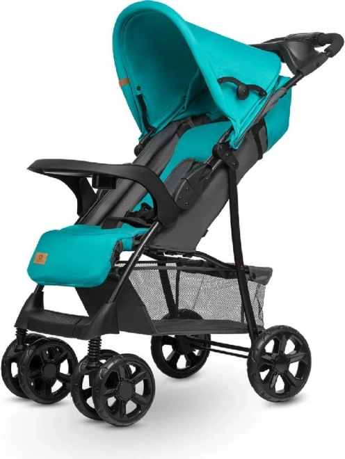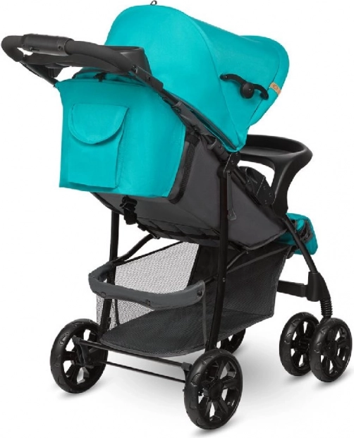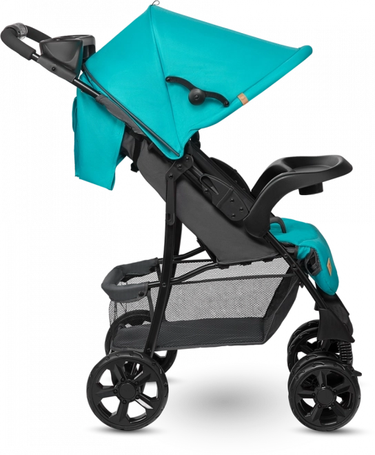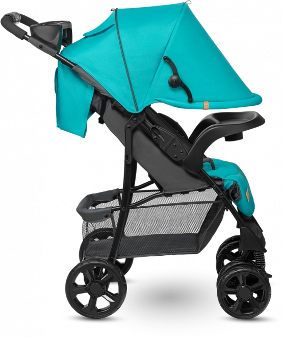 Lahek in praktičen športni voziček Emma Plus v turkizni barvi ponuja hitro zlaganje z eno roko, neprekinjeno nastavljanje do ležečega položaja, 5-točkovne pasove in prostoren koš. Za udobje staršev ne manjkata pladenj/organizator in torba v kompletu. Stabilna konstrukcija z amortiziranimi kolesi in certifikat EN 1888 podjetja SGS zagotavljata varno in udobno vožnjo.