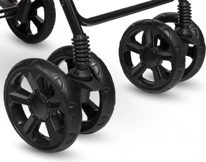 Varnost zagotavljajo 5-točkovni pasovi z oblazinjenjem, dvojno varovalo proti samodejnemu zlaganju in kakovostno vzmetenje koles, ki blaži neravnine. Starši bodo cenili velik nakupovalni koš, pladenj z držali za pijačo in praktično torbo za drobnarije. Certifikacija SGS – EN 1888 potrjuje skladnost z evropskimi varnostnimi standardi.