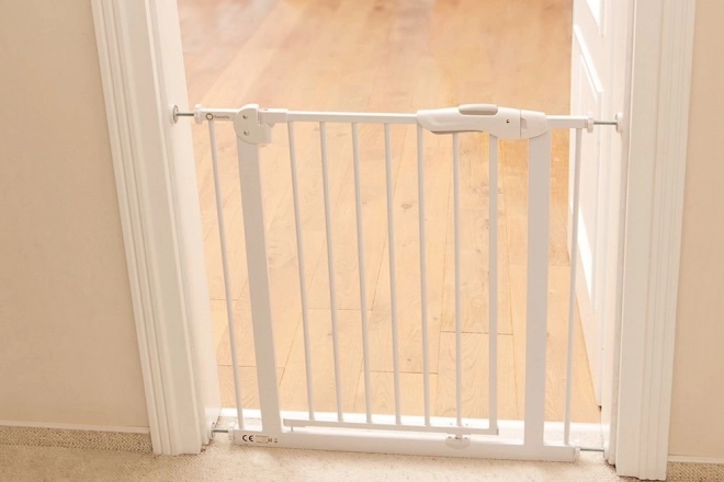 Ta otroška varnostna zapora je idealna rešitev za zaščito vašega otroka v domačem okolju. Primerna je za montažo v vratne odprtine, hodnike in na stopnišča. Montaža ne zahteva vrtanja, kar pomeni, da ne poškodujete sten ali okvirjev. Zaradi znižane višine praga in varne dvojne ključavnice je prehod za odrasle enostaven, vendar varen za majhne otroke.