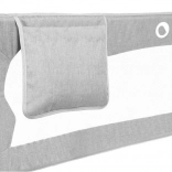 Praktičen velik žep sprejme drobnarije, ki jih želite imeti pri roki. Ograja je preprosta za namestitev, v paketu najdete tudi varnostne pasove za dodatno pritrditev. Po zložitvi se prilega pod posteljo ali v omaro, zato je odlična spremljevalka tudi na potovanjih.