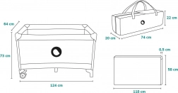 Z intuitivnim mehanizmom zlaganja posteljico hitro pripravite za uporabo ali jo shranite v kompaktno transportno torbo. Praktičen stranski vhod na zadrgo spodbuja samostojnost malčkov, kolesca z zavorami pa olajšajo premikanje po stanovanju.