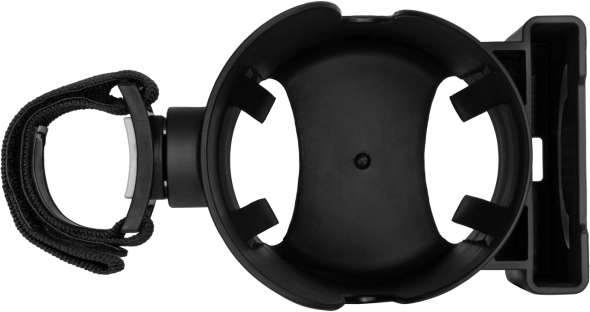 - Držalo je opremljeno z univerzalnim sistemom pritrditve 360° in stabilnim trakom na ježka, ki ga pritrdite na katerikoli ročaj vozička pod poljubnim kotom.