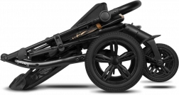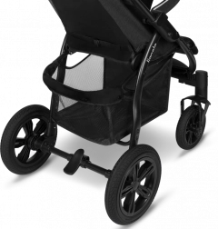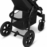 Velika brezvzdrževalna kolesa z odpornim profilom in popolnim vzmetenjem zlahka premagujejo tlakovce in neravnine. Za boljšo vodljivost sta na voljo blokada sprednjih koles in centralna nožna zavora. Z 9-stopenjsko regulacijo ročaja voziček prilagodite svoji višini. Varnost zagotavljajo 5-točkovni pasovi z mehkimi blazinicami ter odsevni elementi na strehici, varovalu in opori za noge. Voziček izpolnjuje standard EN 1888.