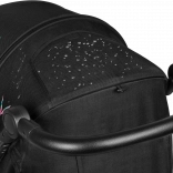 Razširjena XXL strešica z UPF 50+ in vodoodporno obdelavo ščiti pred soncem in dežjem, praktično okence pa omogoča hiter nadzor nad dogajanjem v vozičku. Varnost zagotavljajo 5-točkovni pasovi, odsevni elementi in odstranljiv varnostni lok iz eko usnja. V paketu ne manjka redukcijski vložek za dojenčka, topla prevleka za noge, držalo za pijačo ter prostoren nakupovalni koš z nosilnostjo do 9 kg. Sistem enostavnega zlaganja olajša prevoz in shranjevanje.