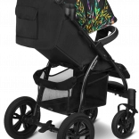 Športni voziček Lionelo Annet Tour temelji na priljubljenem modelu Annet Plus in prinaša še več praktičnosti in udobja. Velika brezvzdrževalna PU kolesa z blaženjem se odlično znajdejo na tlakovcih in gozdnih poteh, medtem ko večstopenjsko nastavljiv ročaj zagotovi udobno upravljanje za starše različnih višin. Naslon lahko spustite do povsem ležečega položaja, zato lahko otrok kadar koli nemoteno počiva.