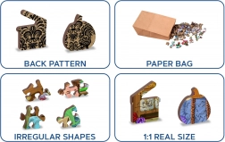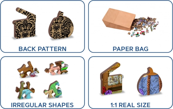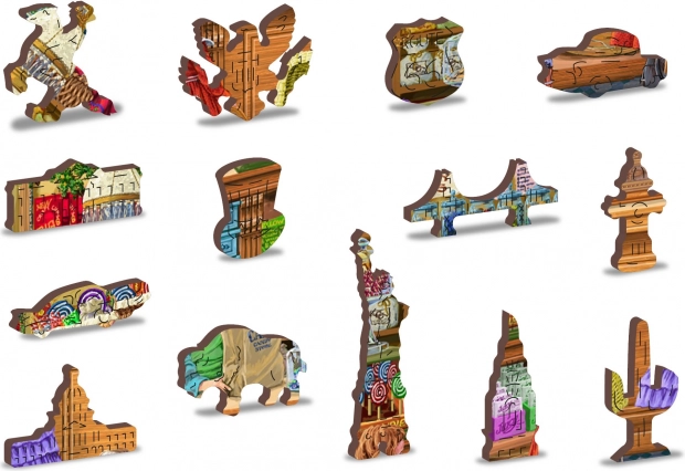 30 edinstveno oblikovanih kosov predstavlja znane stavbe, živali ali predmete, ki puzzlom dodajajo edinstvenost in zahtevnost.
