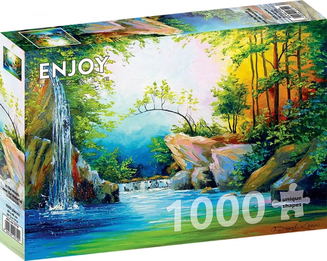 Odkrijte čar narave s sestavljanko ENJOY »V gozdu pri slapu«. Tisoč skrbno izrezanih koščkov ustvari harmonično podobo, ki bo razveselila izkušene sestavljavce in navdušene začetnike. Idealen izbor za mirne večere in skupne trenutke z družino.