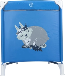 V kompletu je mehka vzmetnica, ki zagotavlja udobno ležanje, in transportna torba, ki posteljico ščiti ter olajša njen prevoz. Modra izvedba z motivom zajčka deluje igrivo in se hkrati lepo poda v vsak interier.