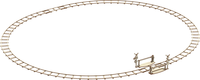 Sestavite svojo lastno krožno železnico s funkcionalnim prehodom in opazujte, kako leseni ekspres drvi po tirih. Model iz kakovostne brezove vezane plošče se sestavlja brez lepila in orodja, ponuja mehanski pogon na elastiko in na polno navijanje prevozi do 4,5 m. Odlično darilo za ljubitelje vlakov in tehničnih sestavljank.