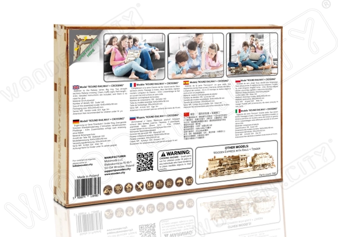WOODEN CITY 3D puzzle krožne tirnice s prehodom prinašajo edinstveno izkušnjo modelarjenja in igre. Zahvaljujoč premišljeni mehaniki in kakovostnemu lesu nastane funkcionalna železnica v merilu 1:40, na kateri lahko s pomočjo prehoda spreminjate smer vožnje. Sestavljanje je zabavno in poučno – spoznali boste, kako sodelujejo prenosi, zobniki in elastomotor.