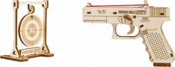 Komplet je izdelan iz okolju prijazne brezove vezane plošče in navdušuje z realističnimi elementi, kot so varovalo, nabojnik in možnost izstreliti do pet gumic zapored. Idealno za navdušence nad 3D sestavljankami, tehniko in kot izvirno darilo.