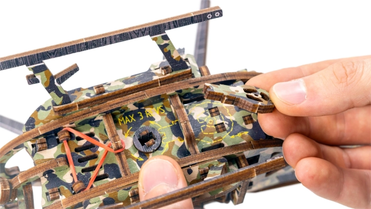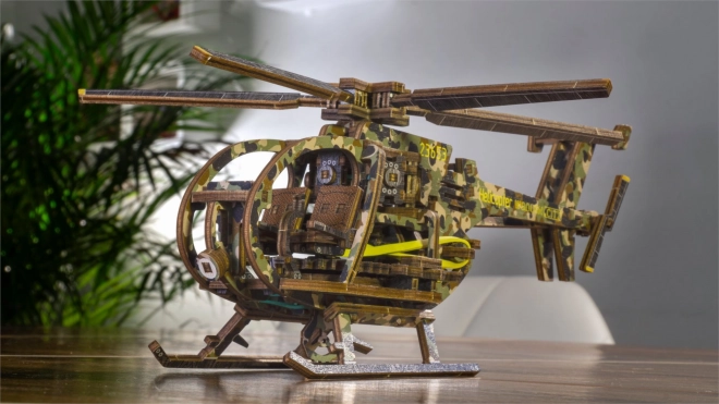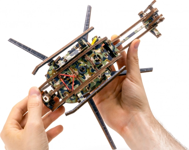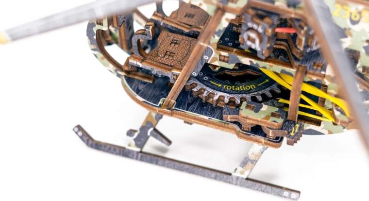 Lesena mehanska sestavljanka vojaškega helikopterja vas čaka! Zaradi edinstvenega dizajna in presenetljivih detajlov tega modela bo vaš prosti čas poln zabave in odličnih čustev. Lastnosti modela: - izraziti barvni elementi zahvaljujoč visokoločljivemu UV tisku, - lesena škatlica služi kot podstavek, - zbirateljska izdaja. 3D sestavljanka WOODEN CITY Helicopter bo najboljše darilo za vsakega ljubitelja letalstva.