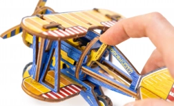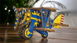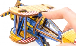 Omejena izdaja 3D sestavljanke WOODEN CITY Dvokrilnik združuje veselje do gradnje z realnimi mehanskimi funkcijami. Zahvaljujoč gumijastemu motorju z navijalnim propelerjem in vztrajniku se model po dokončanju resnično zažene. Barvni elementi, ustvarjeni z visoko natančnim UV-tiskom, poudarijo retro videz in zbirateljski značaj modela.