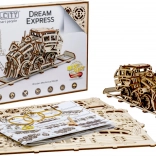 Leseni model Ekspres sanj je idealno darilo za navdušence nad svetom železnic in ljubitelje mehanskih ugank. Ta 3D puzzle je zasnovan tako, da nudi ure zabave in učenja mehanike. Model se sestavlja brez uporabe lepila ali orodja in je izdelan iz okolju prijaznih materialov, natančneje iz kakovostne brezove vezane plošče. Po sestavi lahko v celoti uživate v njegovih mehanskih funkcijah, ki jih poganja gumimotor.