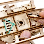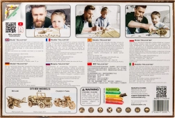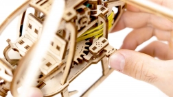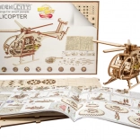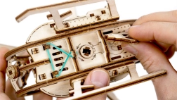 Izdelan iz kakovostne brestove vezane plošče, model ponuja ekološko alternativo plastičnim igračam. Lepilo in orodje nista potrebna, zato je to čist in okolju prijazen projekt. Lesene sestavljanke vključujejo gumijaste motorje in zobnike, zaradi katerih model oživi.