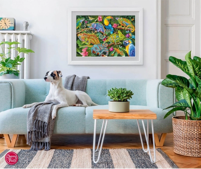 Ta čudovita sestavljanka z motivom kameleonov je idealna za ljubitelje sestavljanja in narave. Z 2000 deli ponuja izziv za izkušene sestavljavce sestavljank. Dokončana sestavljanka ima dimenzije 100 x 70 cm, kar je dovolj velik format, da izstopa vsak detajl motiva. Potopite se v svet kameleonov in uživajte v urah zabave ter sprostitve z družino ali prijatelji.
