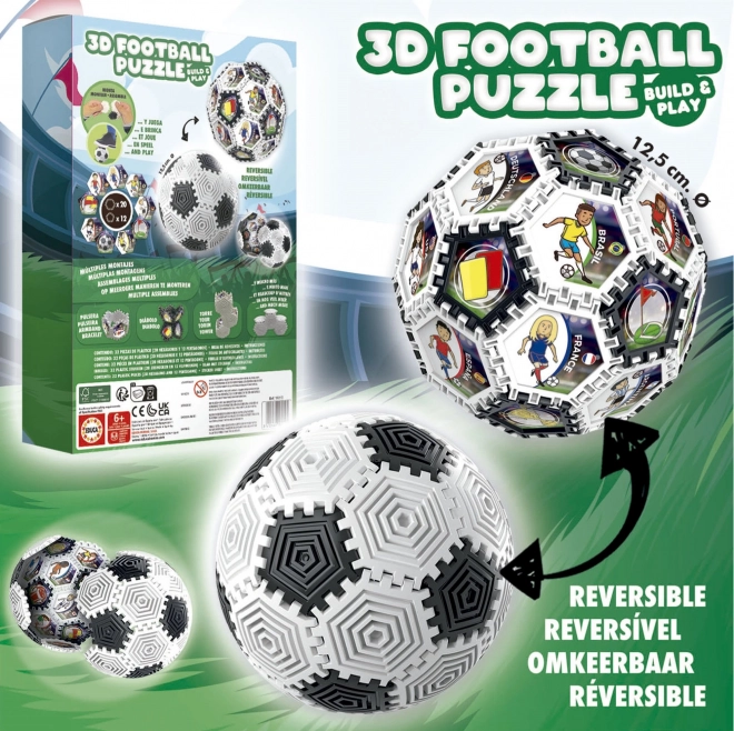 Sestavi in igraj se z originalno dvostransko 3D sestavljanko v obliki nogometne žoge. Ko jo sestavite, dobite trdno in funkcionalno žogo, ki jo lahko okrasite z nogometnimi nalepkami in uporabite za igre.