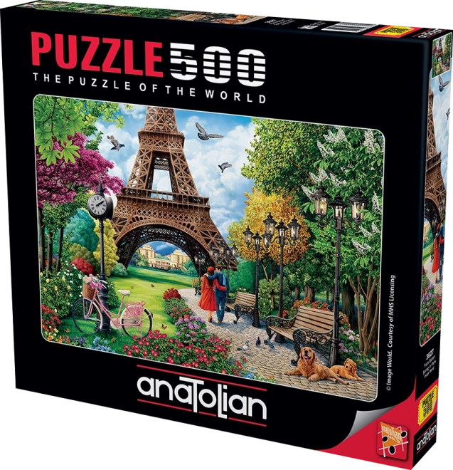 Uživajte v sprostitvenih trenutkih s sestavljanko Pomlad v Parizu. Ta komplet z 500 kosi je idealen za ljubitelje podrobnih slik in nostalgije Pariza. Prav tako je opremljena s praktičnim stojalom, kamor lahko postavite pokrov škatle kot predlogo za sestavljanje.