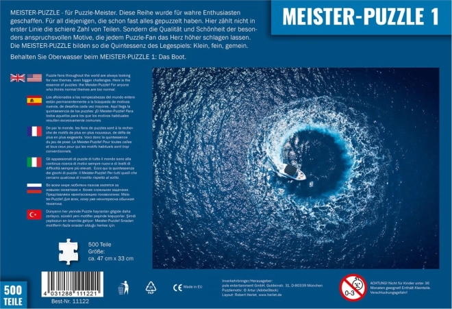 Meister-puzzle 1: ladja je zasnovana za izkušene ljubitelje sestavljank, ki iščejo višjo zahtevnost in se radi posvetijo detajlom. Zahvaljujoč zelo zahtevnemu motivu ladje boste uživali v dolgih urah premišljenega sestavljanja in zasluženem občutku ob dokončanem delu velikosti pribl. 47 × 33 cm.