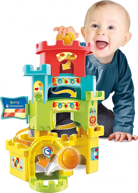 Zgradite barvit grad in opazujte, kako se žogica kotali po stezi znotraj stolpov in ob zidovih. Z vstavitvijo žogice na vrh stolpa sprožite zabavno vožnjo po različnih nivojih – otroci pri tem naravno vadijo fino motoriko in koordinacijo gibov.
