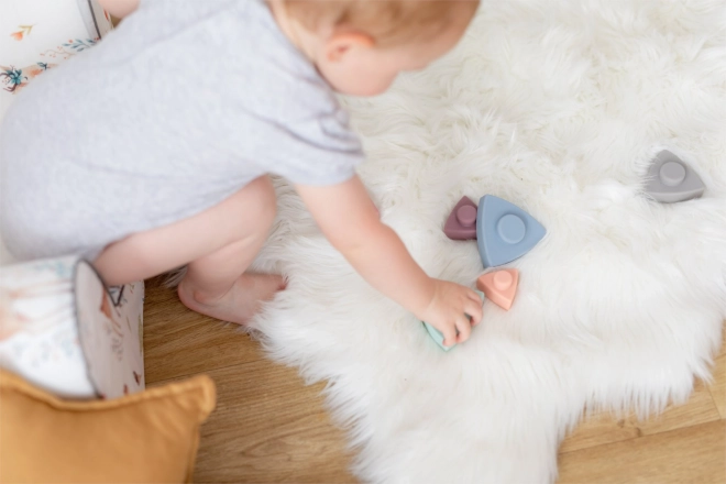 Ta silikonski zložljivi stolp trikotnikov je odlična izbira za smiselno igro najmlajših. Mehki in prijetni deli se preprosto zlagajo en na drugega, s čimer spodbujajo koordinacijo oko–roka, fino motoriko in logično mišljenje. S prijetnimi pastelnimi barvami otroci naravno razlikujejo oblike in barve.