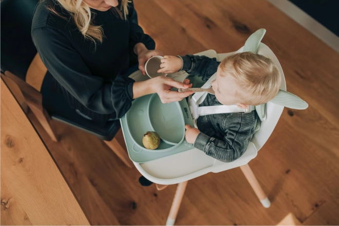 Silikonski krožnik Medvedek s praktičnim priseskom pomaga ohranjati red med hranjenjem in spodbuja samostojnost otroka. Prisesek na spodnji strani zanesljivo preprečuje prevrnitev ali premikanje krožnika. Mehak in lahek material je prijazen do otroških rok in varen za stik z živili.