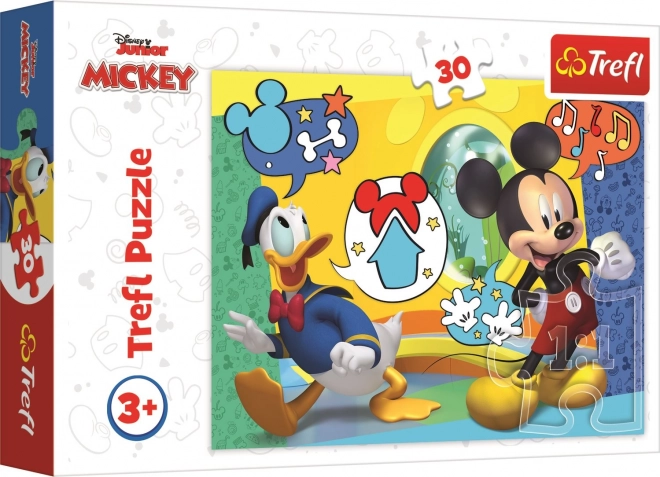 Odkrijte svet zabave s sestavljanko Mikey Miška in Vesela hišica, ki vsebuje 30 raznolikih koščkov. Po sestavljanju ustvarite impresivno sliko velikosti 27x20 cm, ki bo razveselila vsakega oboževalca Mikeyja Miške.