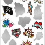 Odkrijte čar skrivnostnih piratskih tetovaž. Te edinstvene tetovaže so prekrite s posebnim slojem, ki skrije dizajn, dokler tetovaže ne nanesete.