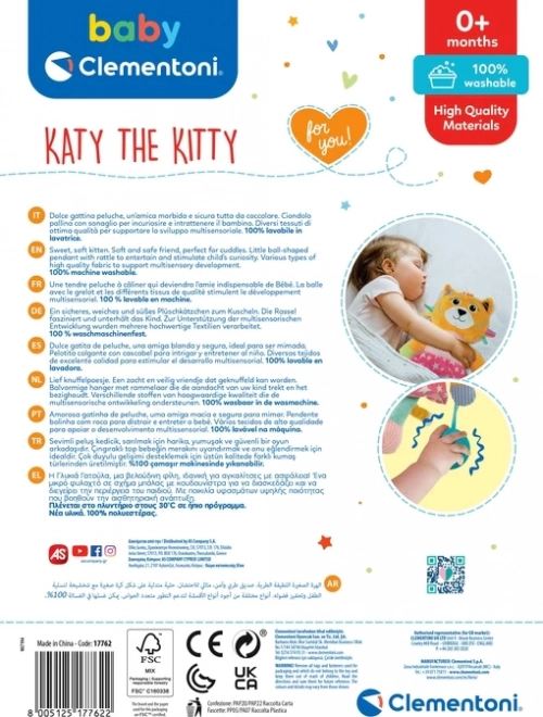 Mere: 30 × 15 × 7 cm. Znamka BABY CLEMENTONI je sinonim za ustvarjalnost, navdušenje in poudarek na kakovosti. Igrače pomagajo staršem pri komunikaciji z otrokom. Videz igrače in njene inovativne barve, nestrupeni in trpežni materiali, oblikovana površina ter različne funkcije pomagajo pri razvoju tipnih in slušnih sposobnosti, spodbujajo gibalne aktivnosti in vzbujajo prve logične asociacije.