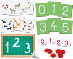 Izobraževalna igra dodatno razvija otrokove veščine pri pripenjanju števil na ploščice s količinami in barvnimi žetoni, s čimer spodbuja logično razmišljanje. Igro je mogoče uporabljati samostojno ali s pomočjo odrasle osebe, zaradi česar je idealen pripomoček za starše in pedagoge.