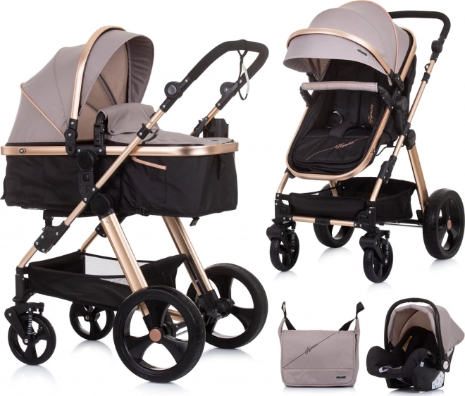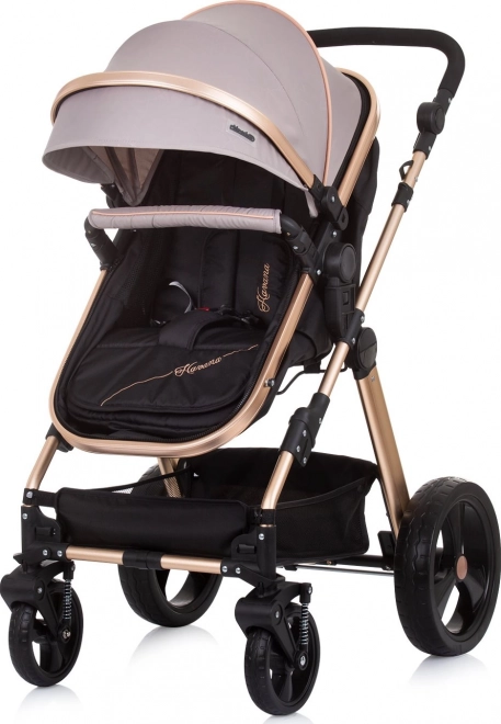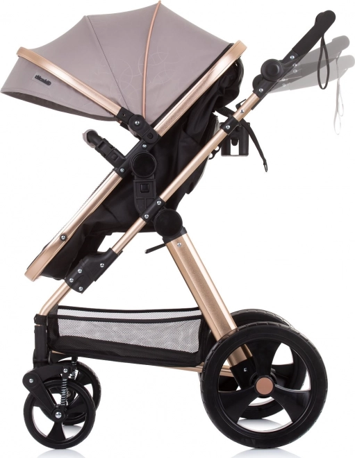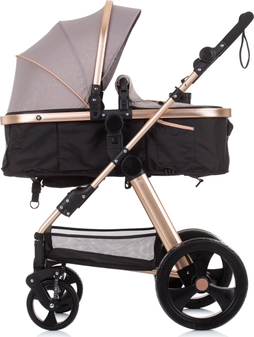 Sodoben kombiniran voziček 2v1 z lahkim in čvrstim ogrodjem za udobna vsakodnevna potovanja od rojstva do 22 kg. Ponuja obračljiv sedežni del, hitro preoblikovanje iz košare v športno različico, vzmetena kolesa za gladko vožnjo ter bogato opremo vključno z torbo, komarnikom in držalom za pijačo.