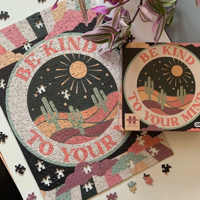Sodoben dizajn sestavljanke z motivom Bodite prijazni do svojega uma je idealen za tiste, ki želijo pobegniti od tradicionalnih motivov in v svoj dom vnesti svež slog.