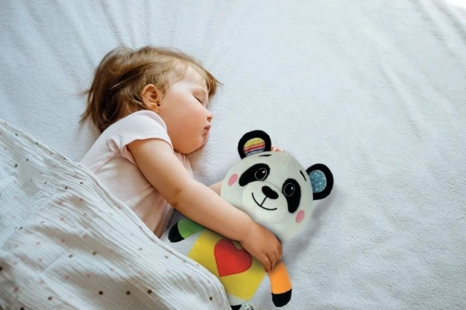 Mehka plišasta panda znamke BABY CLEMENTONI nudi dojenčku občutek varnosti in miren spanec zahvaljujoč uspavankam in prijetnim pastelnim barvam. Ima teksturirano površino za razvoj tipa, po odstranitvi glasbenega modula pa jo je mogoče prati v pralnem stroju.
