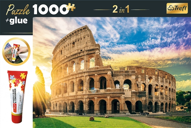 Odkrijte lepoto Rima ob sestavljanju podrobne sestavljanke z motivom legendarnega Koloseja. Set 2v1 je idealen za ljubitelje sestavljank, ki želijo svoje dokončane slike utrditi in razstaviti. Priloženo je praktično lepilo, ki se enakomerno razmaže neposredno po površini slike in po sušenju ustvari trden in prozoren film.