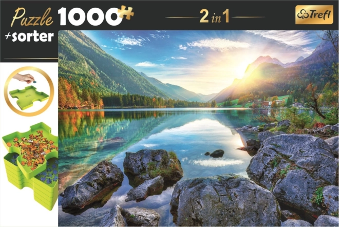 Popoln komplet za ljubitelje sestavljank: sestavljanka z motivom slikovitega jezera Hintersee v Nemčiji in praktičen razvrščevalnik koščkov v enem paketu. Vsebuje 1000 koščkov za sproščujočo zabavo ter šest zložljivih posodic v obliki koščka sestavljanke za hitro in pregledno razvrščanje po oblikah ali barvah.