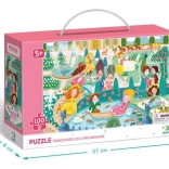 Vesela otroška sestavljanka za male ljubitelje pravljic: 100 koščkov z motivom princes na promenadi v velikosti 65 × 45 cm. Idealno od 5 let, podpira razvoj logičnega mišljenja, potrpežljivost in fino motoriko. Praktična škatla z ročajem za enostavno prenašanje zagotavlja zabavo doma in na poti.