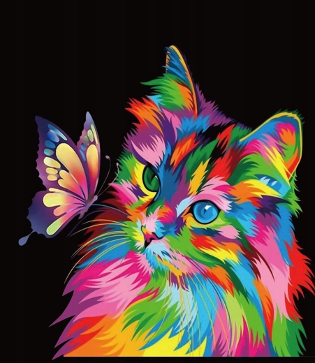 Komplet za diamantno slikanje - mavrični mucek z metuljčkom