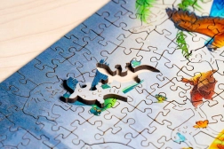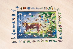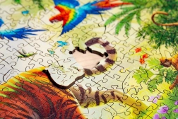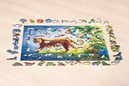 Lesene sestavljanke Tiger v džungli združujejo natančno evropsko izdelavo z očarljivim motivom. Vsak košček je unikat – med njimi boste našli oblike živali, cvetlic in drugih predmetov, ki naredijo sestavljanje še bolj zabavno in vizualno privlačno. Zaradi trdnosti materiala in natančnega izreza sestavljanka odlično drži, ponavljajoče sestavljanje pa je ne poškoduje.