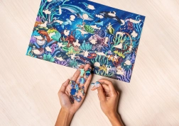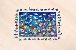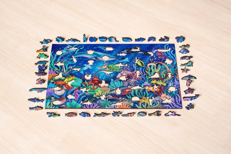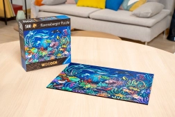 Vzemite si trenutek zase in se potopite v fascinanten motiv oceana, polnega rib, koral in morskih bitij. Lesena sestavljanka s 500 kosi prinaša kombinacijo kakovostne izdelave, elegantnega dizajna in premišljene zabave za vso družino. Zaradi natančno izrezanih oblik, vključno s koščki, ki spominjajo na živali in rastline, je sestavljanje domiselno in privlačno.