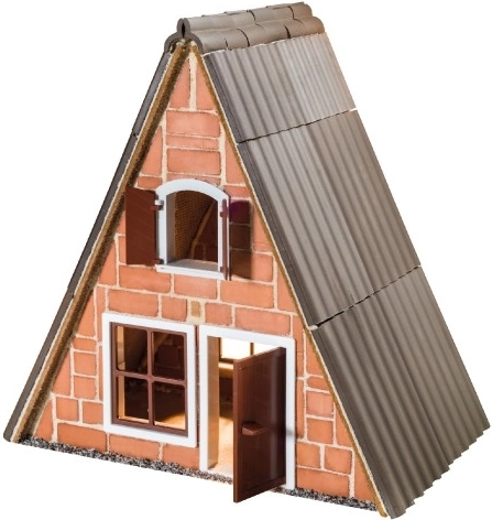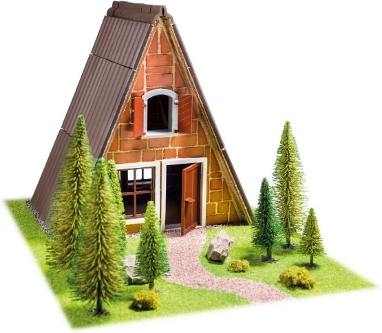 A‑frame zasnova z okni in vrati navduši male graditelje in odrasle modelarje. Odličen uvod v svet arhitekture.